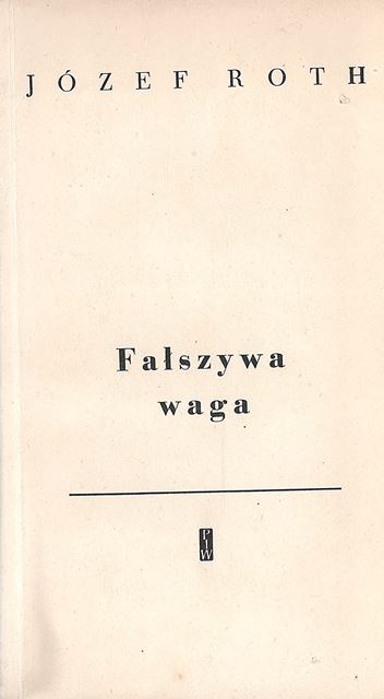 Fałszywa waga / Józef Roth ; przełożył Aleksander Wat. - Wydanie pierwsze. - Warszawa : Państwowy Instytut Wydawniczy, druk 1961. - 159, [1] strona ; 19 cm.