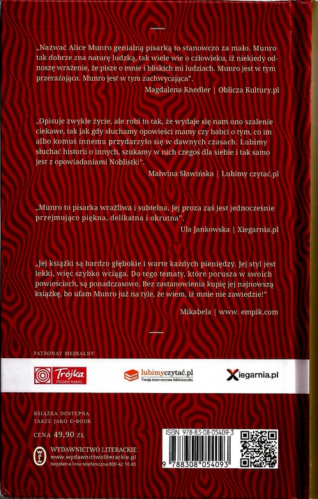 Miłość miewa zaskakujące oblicza, nierozerwalnie powiązana jest ze zdradą, pociąga za sobą nienawiść, a jej odcieni nie sposób zliczyć. Któż inny lepiej umiałby opisać różne barwy miłości, niż noblistka, laureatka Man Booker Prize - Alice Munro? Uczucia, relacje międzyludzkie to stały element jej opowiadań, w pisaniu których stała się prawdziwą mistrzynią. Alice Munro potrafi na kilkunastu stronach przedstawić całe życie i wachlarz emocji, które mu nieodzownie towarzyszą. Właściwie do całej jej twórczości (w ciągu 45 lat napisała i wydała 14 oryginalnych zbiorów) można zastosować określenie odcienie miłości, ale ona sama nazwała tak swój tom z 1986 roku.