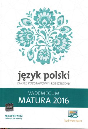 Język polski. Vademecum. Matura 2016. Zakres podstawowy i rozszerzony Nowe wydanie vademecum maturalnego z języka polskiego opracowane zgodnie z wymogami CKE dla matury od 2015 roku to przede wszystkim: – analiza tematów i przykładowe pytania, które mogą się pojawić na egzaminie ustnym – opracowanie nowych zagadnień zgodnie z podstawą programową, m.in. z historii literatury i kształcenia językowego – wskazanie różnych wariantów wykorzystania danej lektury na egzaminie maturalnym – praktyczne wskazówki dotyczące pisania rozprawki, eseju, analizy tekstu literackiego, analizy porównawczej itp.[operon].