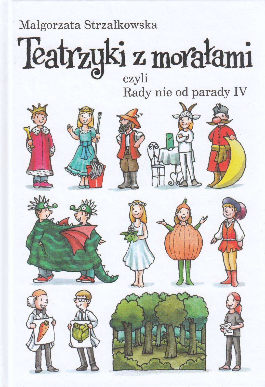 Przedstawiamy kolejny, czwarty już tom cyklu RADY NIE OD PARADY. Poszczególne utwory, z których każdy kończy się morałem, łączy forma – wszystkie przeznaczone są do wystawiania na scenie. Wśród bohaterów inscenizacji znajdziemy króla Gnata, imć Twardowskiego, królewnę o dziwnych upodobaniach, zbójców, kozę, która wybrała się na wycieczkę do Paryża, i wiele innych postaci. Teksty rozpisane są na role, a w przedstawieniach może brać udział nawet spora gromadka młodych aktorów. To znakomita nauka przez zabawę. Zapraszamy!