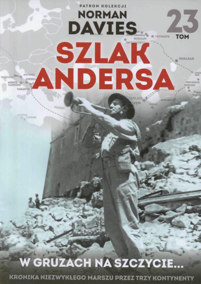 Kolekcja pod patronatem Prof. Normana Daviesa Marsz Armii Andersa nie ma sobie równych w historii: sto dwadzieścia tysięcy ludzi przeszło dwanaście tysięcy kilometrów. Rozsypani po „nieludzkiej ziemi” Polacy stawili się na wezwanie generała Andersa, licząc na ocalenie. Granice Związku Sowieckiego przekraczali z nadzieją na powrót do domów. Gdy zwyciężali Niemców pod Monte Cassino, Ankoną i Bolonią, wiedzieli już, że nadzieje te pozostaną niespełnione. To oni stali się namiastką wolnej Polski. Żołnierzom towarzyszyli cywile: dzieci, kobiety, starcy. Wszyscy oni próbowali normalnie żyć: działały szpitale, szkoły, sierocińce. Trudy ich marszu, codzienne rozterki, poświęcenie w boju, drobne radości i wielkie dramaty składają się tę na opowieść o jednym z najbardziej niezwykłych rozdziałów II wojny światowej. W kolekcji „Szlak Andersa” pokazujemy ogromną różnorodność ludzi dowodzonych przez generała Andersa, cały wachlarz ich uczuć i przeżyć. W każdym z 40 tomów zamieszczono nieznane relacje świadków, niepublikowane dotąd materiały archiwalne oraz zdjęcia dokumentujące jeden z najbardziej niezwykłych rozdziałów II wojny światowej.