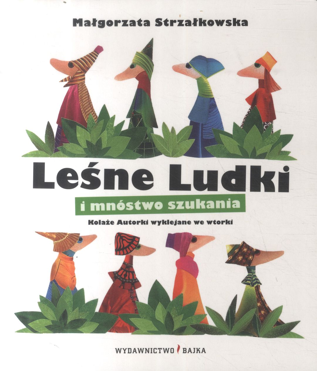 Wielką pasją Leśnych Ludków jest szukanie, do którego zachęcają także małych Czytelników, ćwicząc z zapałem ich spostrzegawczość. Początkowo na ośmiu rozkładówkach maluch towarzyszy każdemu z Ludków przy wyszukiwaniu ukrytych przedmiotów. Kiedy wszystkie Ludki odnajdują wymienione w wierszyku rzeczy, pakują je do worków i zanoszą do swojego domku „na jasnej, łysej polanie”. Ale na tym nie koniec! Ludki bowiem „przedmioty z worków siup! wysypały… No i popatrzcie, co tu się stało! Wszystko ze wszystkim się pomieszało!”. Zabawa zaczyna się od nowa! Przeznaczona dla dzieci w wieku 2-4 lata książeczka jest kartonowa, z zaokrąglonymi rogami, solidnie wykonana, co pozwala na jej łatwe kartkowanie i wróży długi żywot – a to ważne, bo kolorowe, wykonane techniką kolażu ilustracje i wesoły, rytmiczny tekst zachęcają dzieci do wielokrotnej lektury.