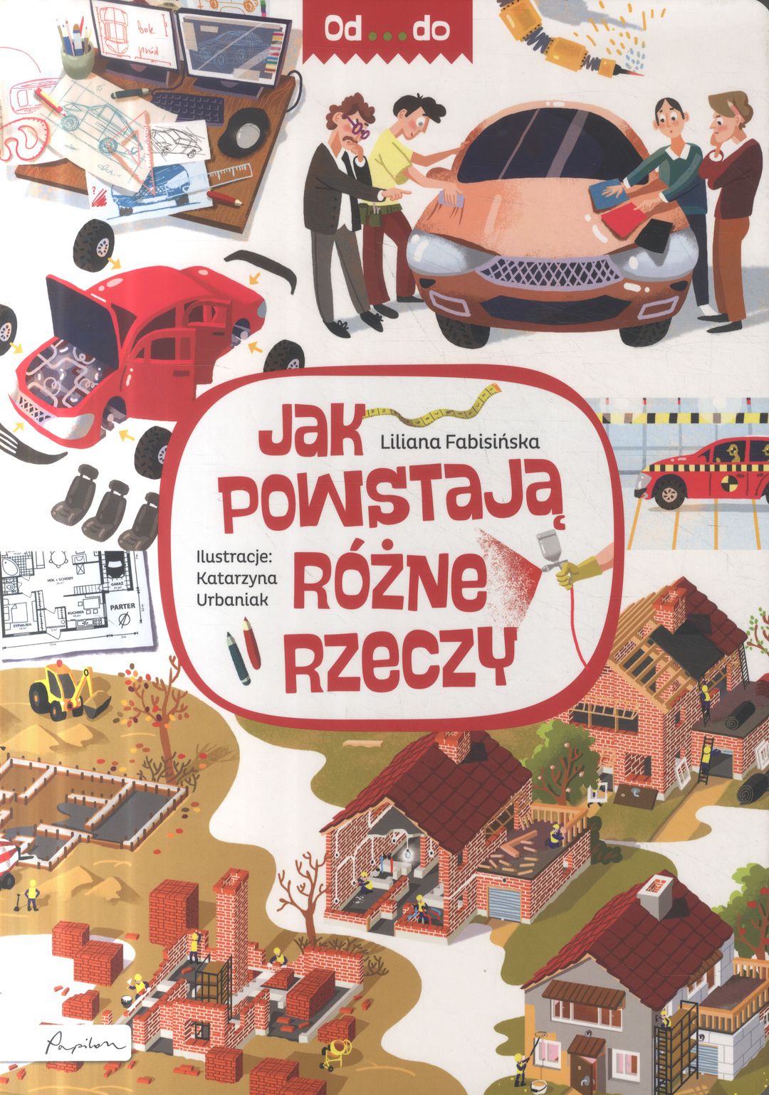 Skąd się bierze chleb? Jak powstaje samochód? Co trzeba zrobić, żeby zbudować dom? Skąd się biorą książki? Pokazujemy i objaśniamy, jak powstają rzeczy, które otaczają nas na co dzień. Pytajcie śmiało! samochód * samolot * szkło * dom *krzesło * książka * klocki * spodenki * plaster * chleb * żółty ser * czekolada * lody. Pełne szczegółów ilustracje, na których dziecko odnajdzie fascynujące elementy. Przystępnie napisany, zrozumiały tekst. Do tego trwałe, kartonowe strony. Książka, z którą trudno się rozstać.