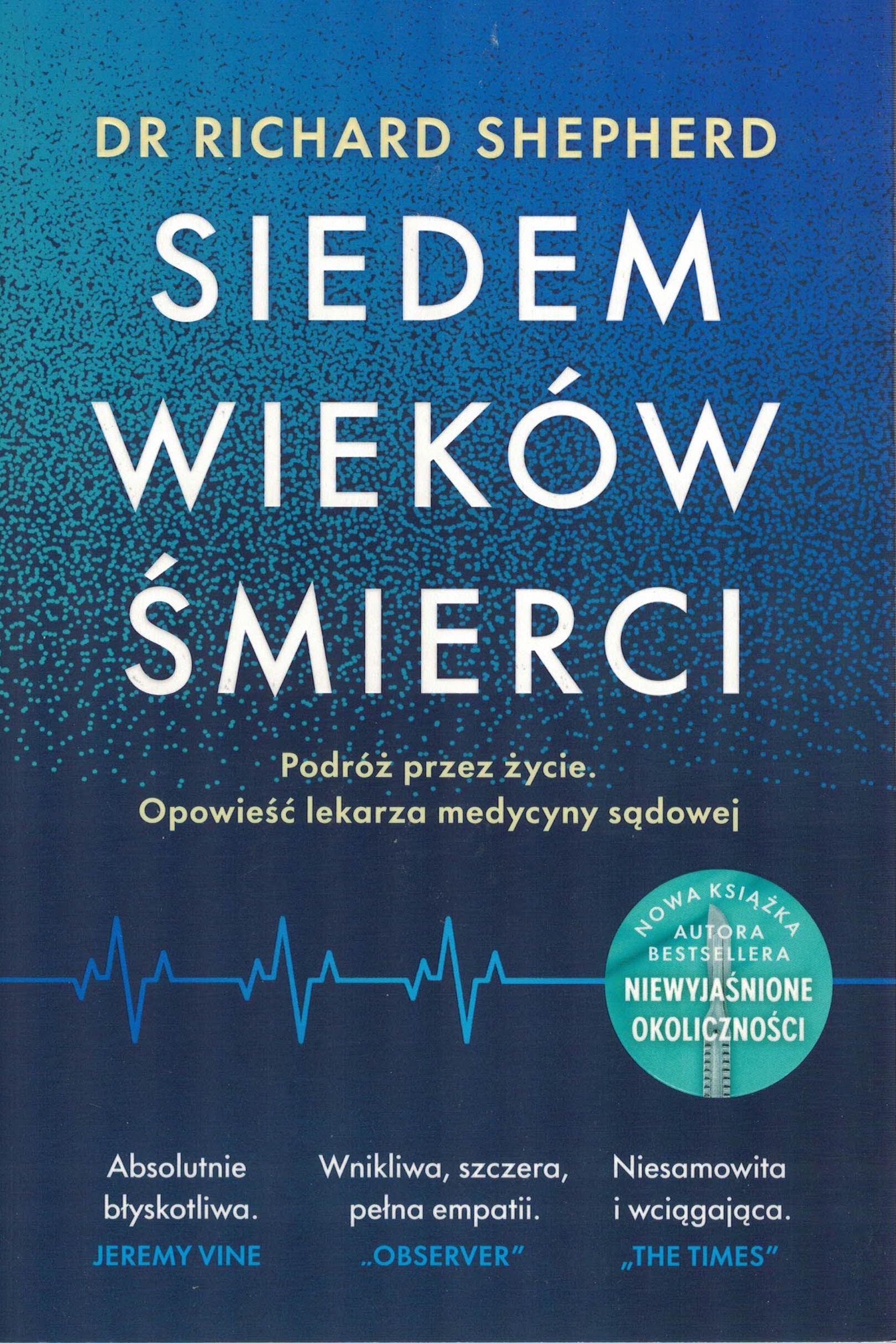 „Choć to książka o śmierci, zabieram w niej czytelników w podróż przez życie…” Richard Shepherd – wybitny brytyjski patolog – całe życie spędził blisko zmarłych. Każda przeprowadzona przez niego autopsja to unikalne śledztwo, które nie tylko pozwala odkryć tajemnicę śmierci badanej osoby, ale również poznać, z czym się zmagała i czego doświadczała na różnych etapach życia. Ofiary morderstw i nieszczęśliwych wypadków, zmarli w wyniku choroby – każde z ciał, czy to starca, czy nastolatka, ma coś do przekazania: o rozwoju człowieka, o zagrożeniach, na jakie narażeni jesteśmy od niemowlęctwa po starość, o naszych nawykach, niechęciach i upodobaniach. Przedstawiając dwadzieścia cztery najbardziej intrygujące, pouczające i nigdy wcześniej nieopowiedziane przypadki, które obejmują siedem wieków ludzkiej egzystencji, doktor Shepherd dzieli się autopsjami, które nauczyły go tyle samo o nieuchronności śmierci, co o cudzie życia.