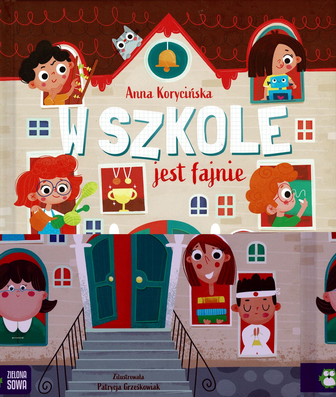 W szkole jest fajnie / Anna Korycińska ; zilustrowała Patrycja Grześkowiak. - Wydanie I. - Warszawa : Zielona Sowa, 2023. - [40] stron : ilustracje ; 26 cm.