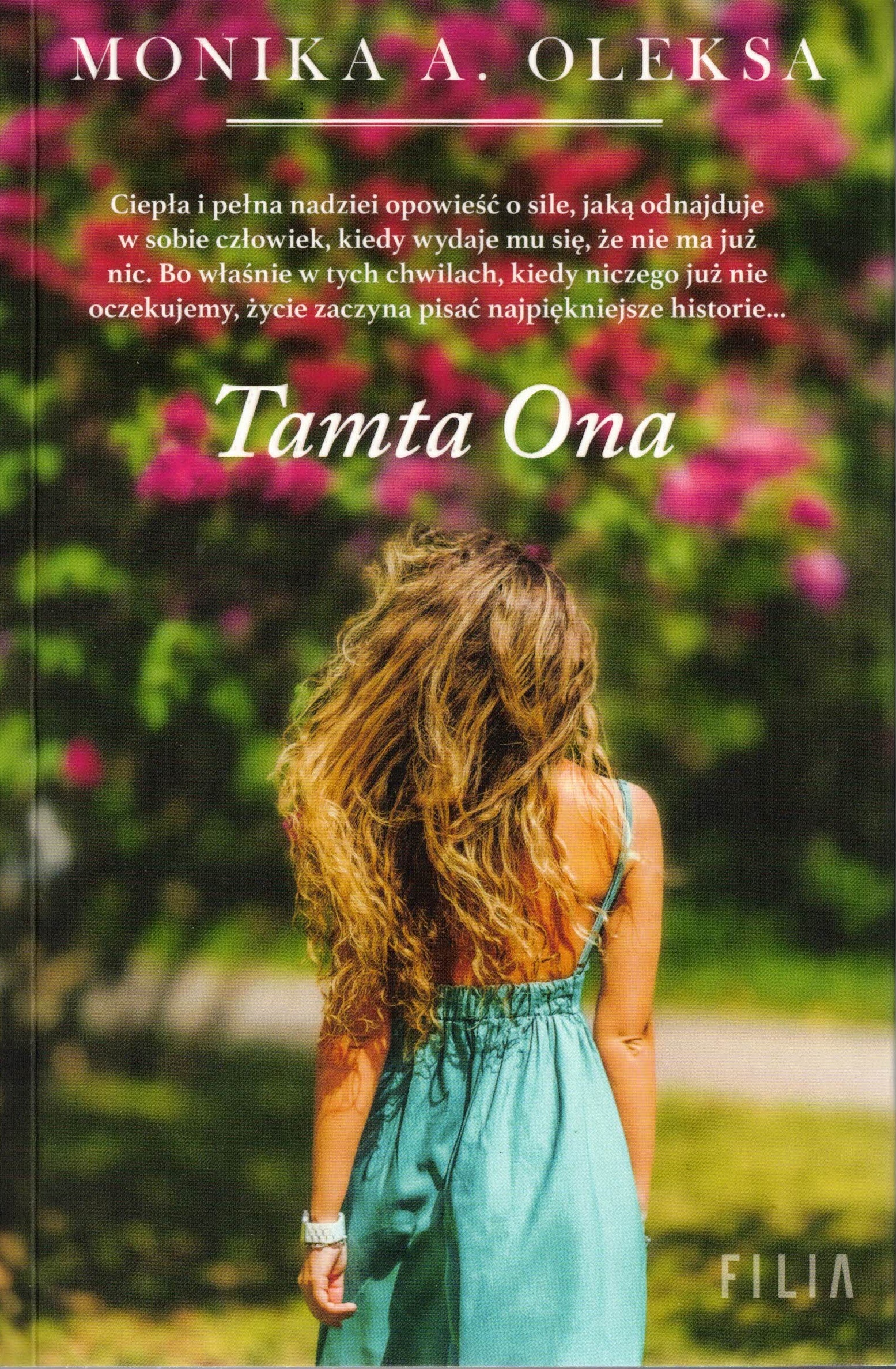 Dominika kocha wiosnę, bo wtedy jej ogród budzi się do życia, cała przyroda rozkwita, a dni mienią się kolorami. Którejś wiosny, jednak, wszystko obumiera. Rozsypują się plany, marzenia i rodzina. Po dwudziestu trzech latach małżeństwa kobieta zostaje z rozdzierającą pustką, poczuciem odrzucenia i z cieniem Tamtej. Codzienność staje się sceną walki, którą Dominika toczy sama z sobą. Dzień po dniu tworzy siebie na nowo ze świadomością, że tylko z popiołów można się tak najprawdziwiej odrodzić. „Tamta ona” to książka o pokaleczonej rodzinie, roztrzaskanym poczuciu własnej wartości i dramacie tych, których dotyka rozstanie. To ciepła i pełna nadziei opowieść o sile, jaką odnajduje w sobie człowiek, kiedy wydaje mu się, że nie ma już nic. Bo właśnie w tych chwilach, kiedy niczego już nie oczekujemy, życie zaczyna pisać najpiękniejsze historie...